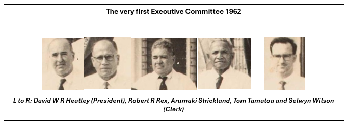 August 1962 The member for Vaiea (Talaiti Posini) on behalf of all announced that they have elected Robert R Rex (Member for Alofi South), Tamatoa Tom (Member for Tuapa), and Arumaki Strickland (Member for Alofi North), together with the President to form the Executive Committee. 22-23 August 1962. Note: Membership was increased to four elected Members of the Assembly in 1966.